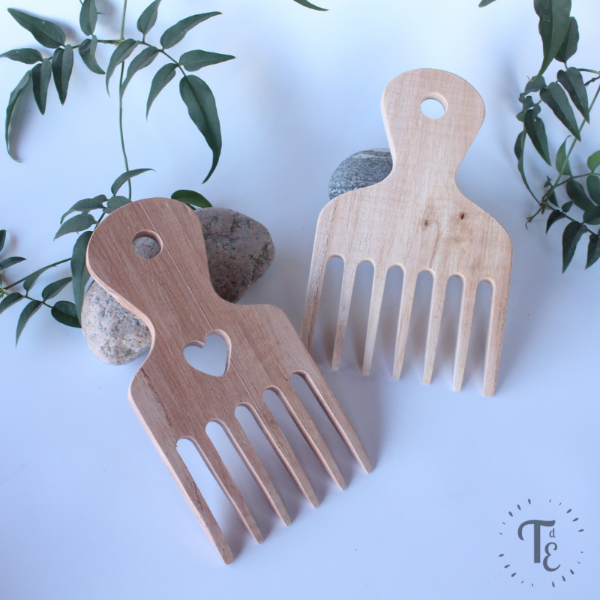 *Peine para rulos: 14cm de alto, 7cm de largo(modelo con corazón calado) o 8,5cm (modelo liso), 0,5 cm de ancho.